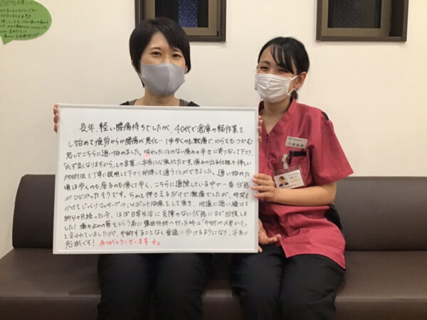 別の接骨院で改善しなかった腰痛がよくなりました!